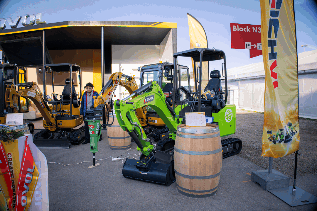 雷沃重工展臺位于FN-320/1F,以“為全球客戶創(chuàng)造更大價值”為主題,展出了涵蓋挖掘機、裝載機、新能源產(chǎn)品等多款歐洲高端產(chǎn)品。其中,多款小型設(shè)備成為觀眾關(guān)注的焦點。