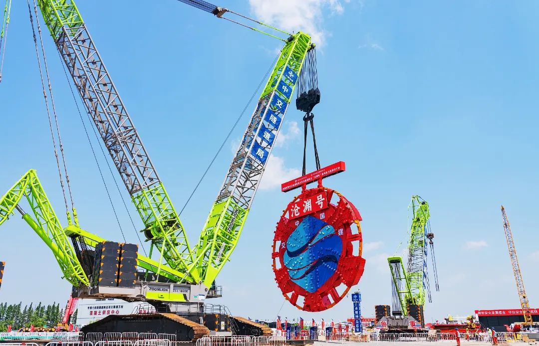 “滄淵”入井通海太,中聯重科起重機助力國內最大直徑盾構機吊裝