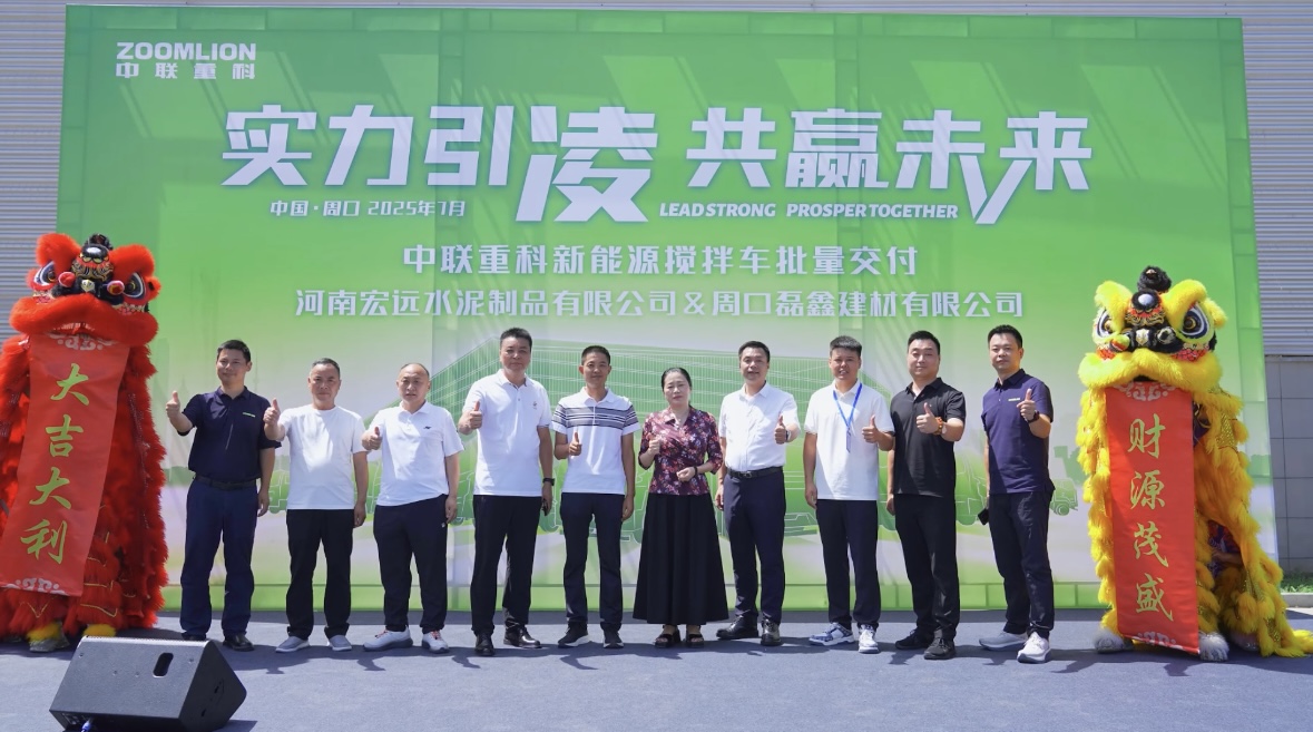 七月盛夏,中原大地生機勃發。近日,中聯重科“凌冠”新能源攪拌車批量交付河南宏遠水泥制品有限公司、周口磊鑫建材有限公司,周口市住建局相關領導現場見證。此次交付將有力推動周口市商品混凝土運輸的綠色轉型,為河南“雙碳”目標的實現注入新動能。