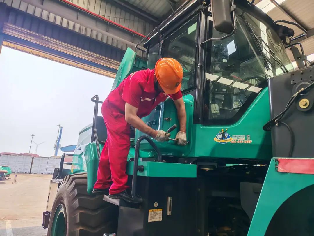 作為此次客戶關愛行活動的重要一站,山推服務團隊頂著盛夏酷暑,率先奔赴山東區(qū)域某港口,為客戶的6臺LE60-X5電裝整機提供全方位檢修服務。抵達現(xiàn)場后,服務人員迅速投入工作。針對港口作業(yè)環(huán)境的特點,團隊制定了精細化服務方案:首先對6臺整機開展全車點檢,重點檢查核心組件的運行狀態(tài),細致排查螺栓緊固度,確保設備關鍵部位無隱患。