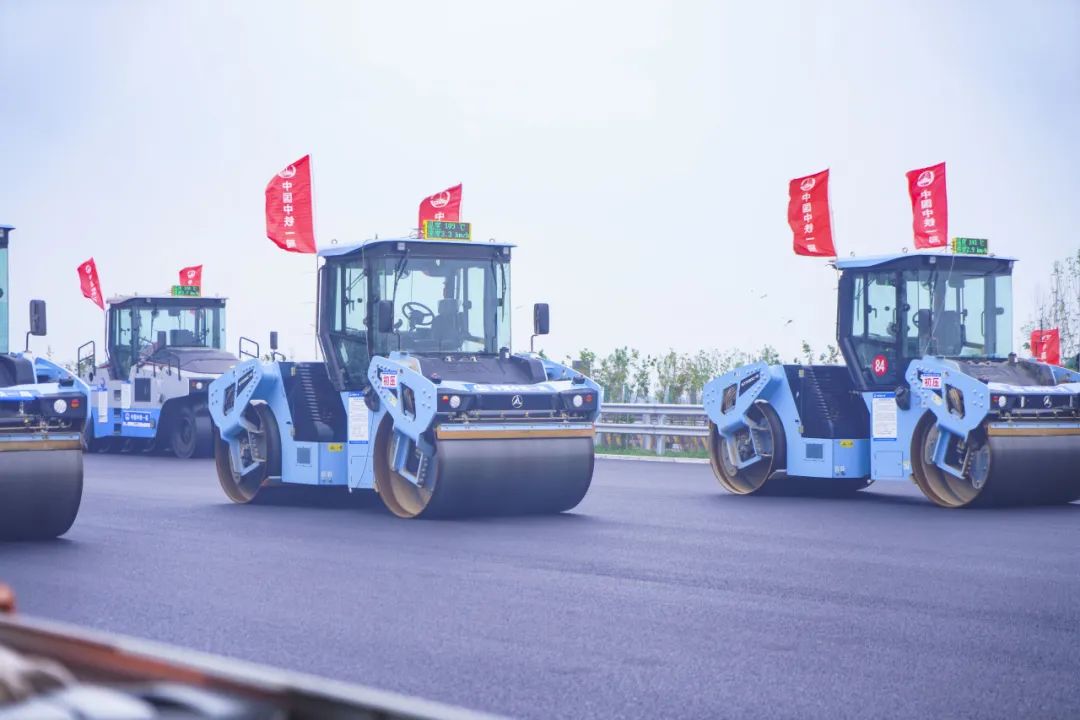 智能產品方面,積極推進科研成果轉化,致力于打造領先的智能化產品。其中,公司無人攤壓機群在京哈高速項目中創下三項紀錄,規模之最:2攤10壓全無人化配置,實現瀝青路面全厚度連續施工;時長之最:創下智能化單次24小時連續瀝青施工超480小時紀錄;寬度之最:無人雙機并鋪25.25米路寬,現為無人機群領域攤鋪最大寬度。