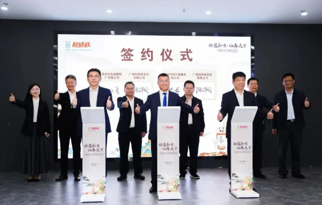 啟幕會現場,食品投資公司黨總支書記、董事長、總經理廖榮國與四家重點客戶簽訂首批銷售協議,現場成交5000余瓶桂仙露酒,展現出市場對草本養生酒新品類的高度認可。